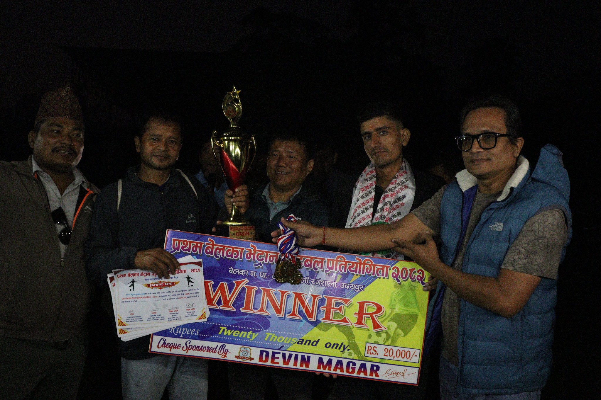 बेलका भेट्रान फुटबल क्लबको आयोजनामा भएको उक्त खेल बिहान ८ बजे औपचारिक रुपमा सुरु भएको थियो। कार्यक्रमको संचालन बेलका भेट्रान क्लबका कोषाध्यक्ष भक्त खालिङ्गले गर्नुभएको थियो। खेलको अध्यक्षता क्लबका अध्यक्ष सुकलाल चौधरीले गर्नुभएको थियो भने प्रमुख अतिथि बेलका नगर युवा तथा खेलकुद विकास समितिका अध्यक्ष गोपिलाल राई रहनुभएको थियो। साथै नेकपा एमाले जिल्ला कमिटी सदस्य गणेश बस्नेत, जसपा बेलका नगर अध्यक्ष सुरेन्द्र खालिङ, नगर खेलकुद समितिका सचिव दिपेन राना, नगर प्रमुखको स्वकीय सचिव महोन कार्की, प्रेस संयोजक ध्रुव प्रसाद कोइराला, सरस्वती डेन्टल कियर सेन्टरका सञ्चालक शम्भु शाह, प्रहरी हवल्दार राम बहादुर कटुवाल, ब्रदरहुड फुटबल क्लबका अध्यक्ष रबिन तामाङ र बेलका एफएमका सहायक स्टेशन म्यानेजर कविता राईलगायतको उपस्थितिमा खेल सम्पन्न भएको हो।
