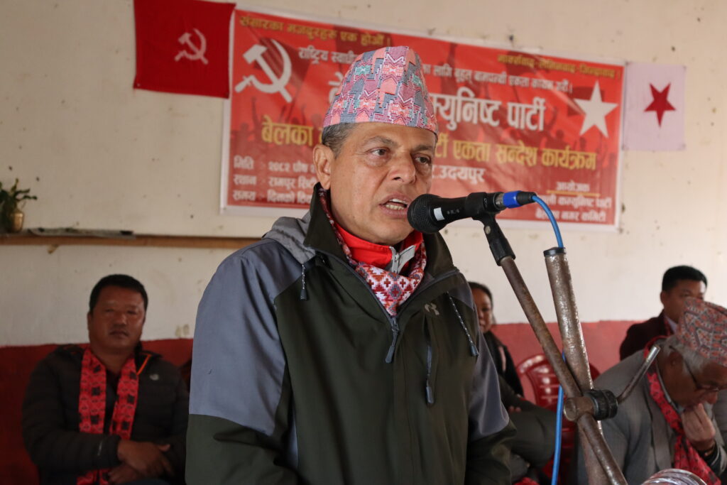 २५ पुष, बेलका / उदयपुरको बेलका नगरपालिका-रामपुरमा बिहीबार नेपाली कम्युनिस्ट पार्टीको नगरस्तरीय ‘एकता सन्देश सभा’ सम्पन्न भएको छ। साबिकको नेकपा (माओवादी केन्द्र), नेकपा (एकीकृत समाजवादी) लगायत एक दर्जन वामपन्थी दल र समूह मिलेर गठन भएको नेकपाले केन्द्रदेखि स्थानीय तहसम्म एकता सन्देश सभाहरू सञ्चालन गरिरहेको छ।