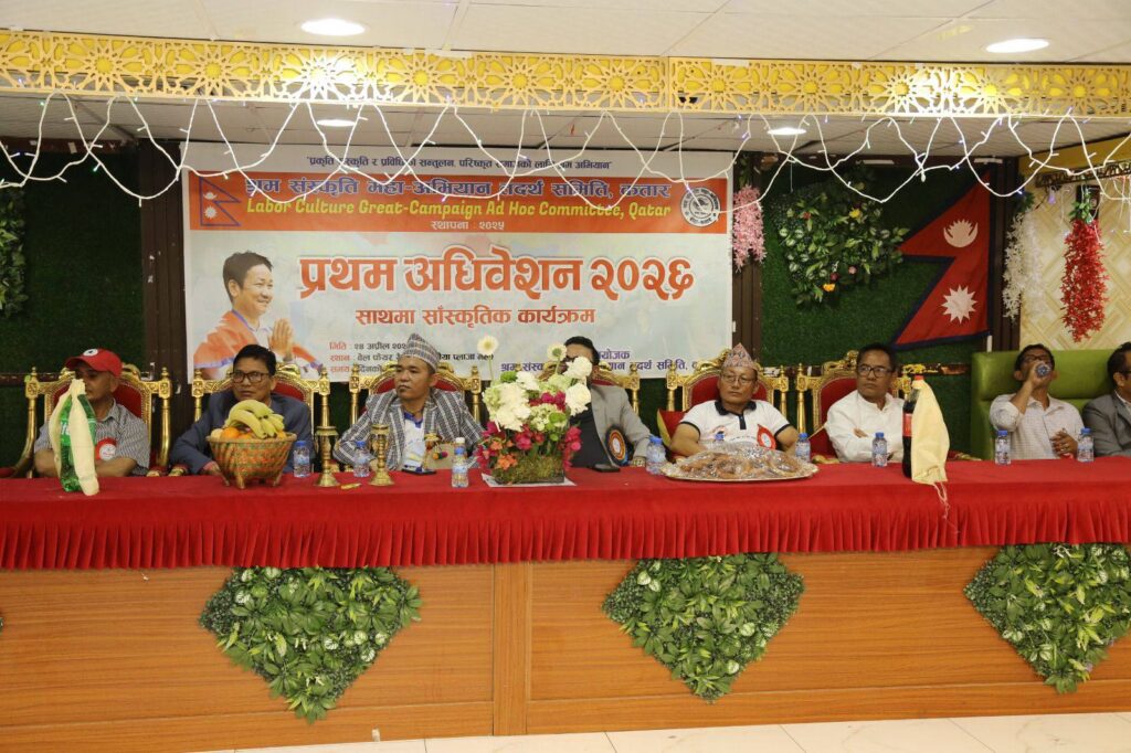 १३ दोहा, कतार / श्रम संस्कृति महा-अभियान तदर्थ समिति कतारको प्रथम अधिवेशन सम्पन्न भएको छ। प्रकृती, संस्कृती, प्रविधिको सन्तुलन, परिस्कृत समाजको लागी श्रमअभियान भन्ने मुल नाराको साथमा २४ अप्रिल २०२६ का दिन दोहास्थित वेलफेयर रेस्टुरेन्टको सभाहलमा सम्पन्न भएको थियो। अधिवेशनको बन्दसत्रबाट बेलका निवासी शुक्र कुमार राई (सुबास) सर्वसम्मत अध्यक्षमा चयन भएका छन।